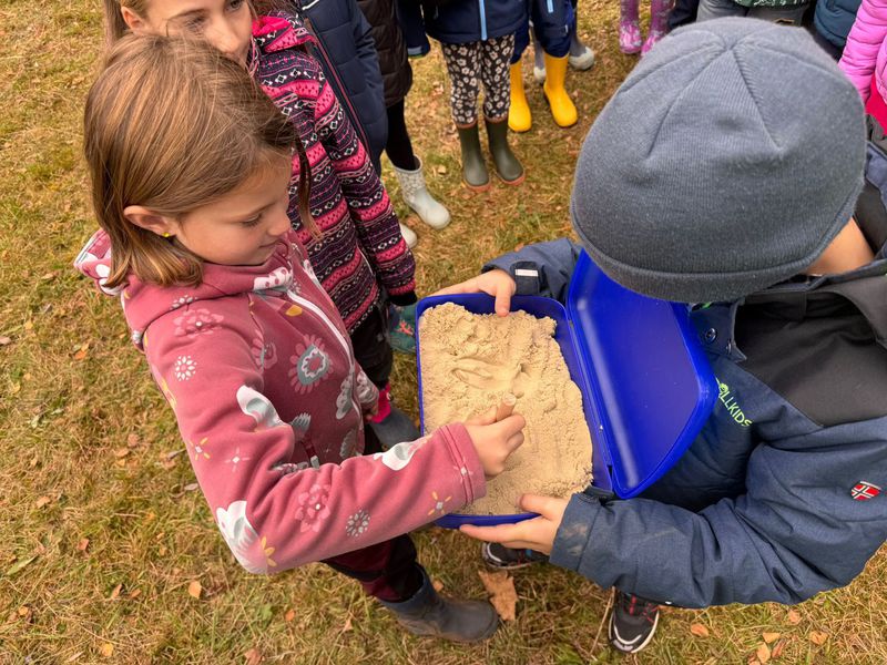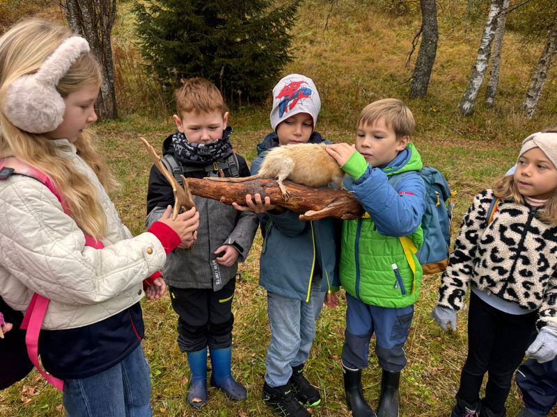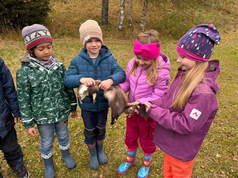 Unsere Kinder erfuhren an diesem Tag sehr viel über die einheimischen Wildtiere, konnten ihre Felle und Schädel bestaunen und durften Tritt-Siegel (Fußspuren der Tiere) kennenlernen. Bei der