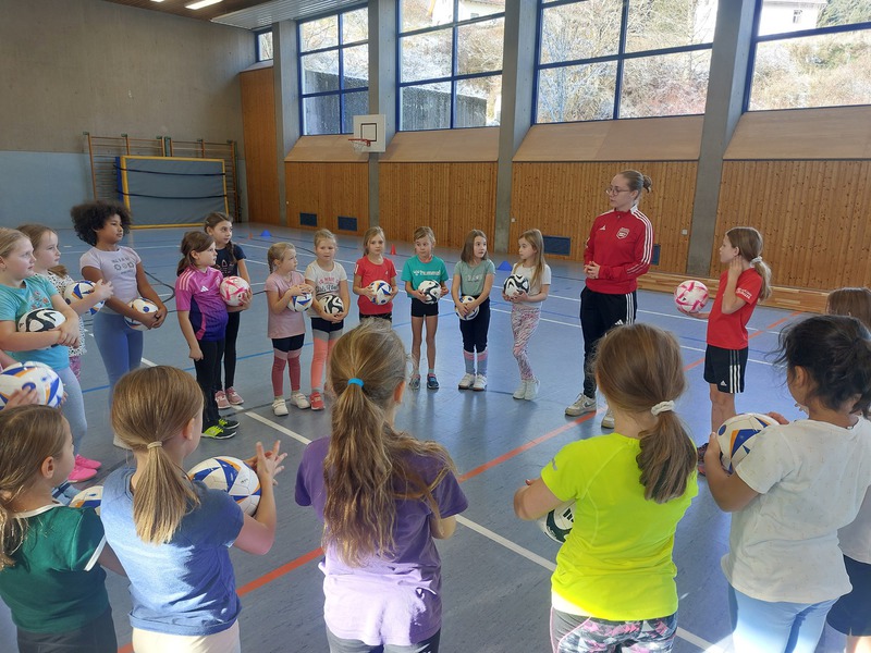 Am 19.11.2025 besuchte uns das Mädchenmobil des Südbadischen Fußballverbandes. Das Angabot ging an Mädchen aus der 2. und 3. Klasse. In dieser Doppelstunde hatten die Mädchen Spaß und bekamen einige interessante Übungen gezeigt, die sie gleich ausprobieren durften.