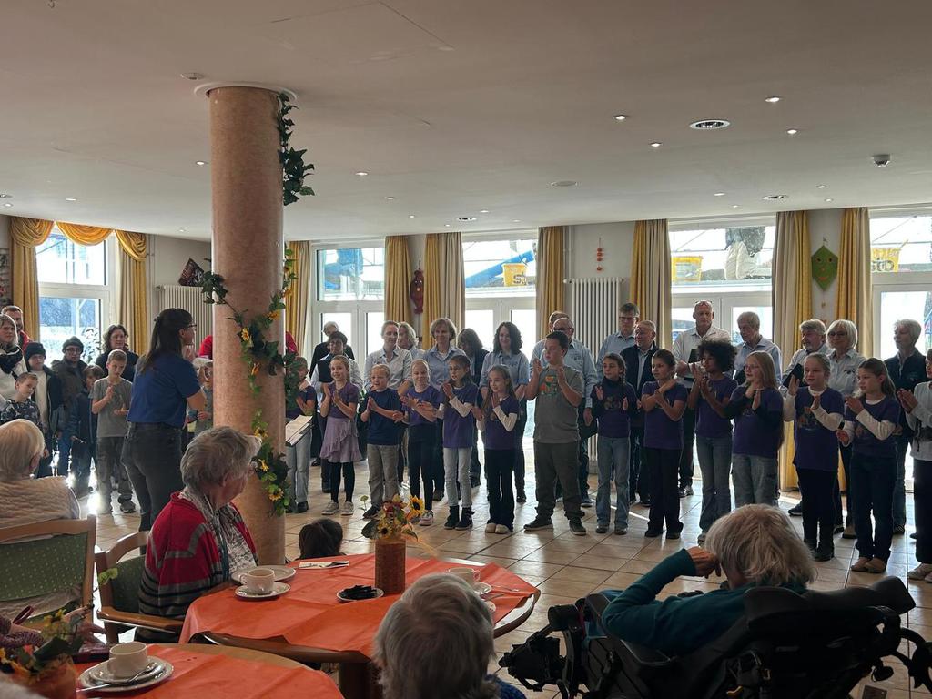 Seit einigen Jahren singen die Kinder unserer Schule gemeinsam mit dem Concordia Gesangsverein im Spätherbst für die Bewohnerinnen und Bewohner des Pflegeheims Luisenhof.