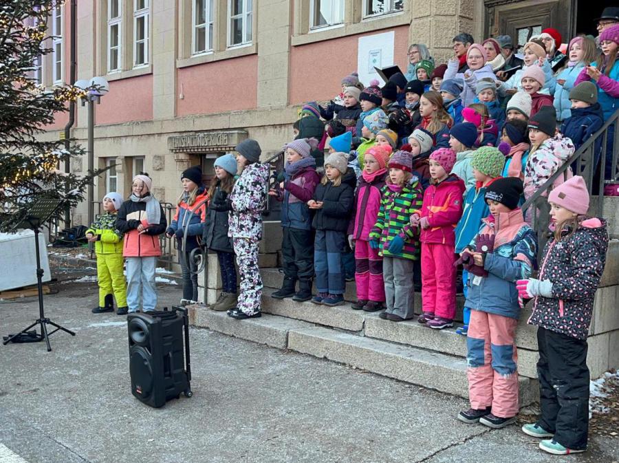 Dieses Jahr fand der Weihnachtsmarkt vor der alten Schule statt. Am Samstag hatte auch die JHS ein Angebot. So wurde im Foyer der Festhalle weihnachtlich gebastelt. Um 16.00 Uhr kam es zu einem gemeinsamen Auftritt der Schüler mit dem Gesangsverein Concordia.