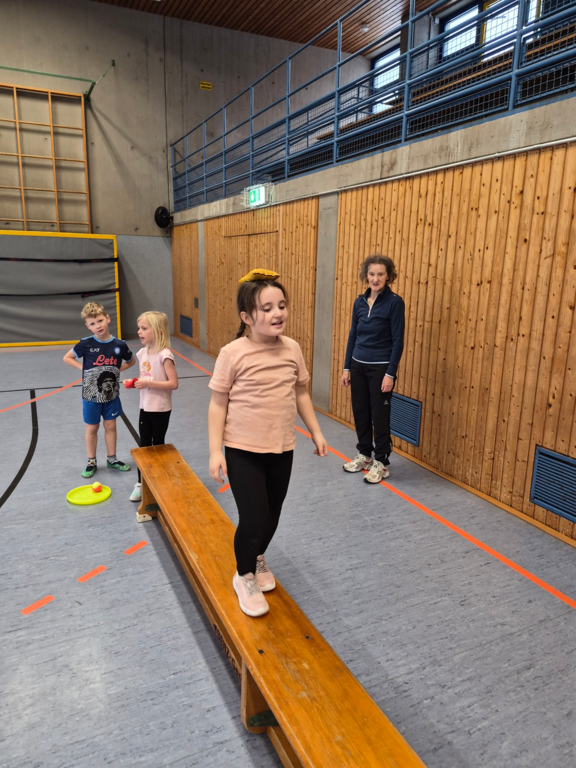 Am Dienstag, den 3. Februrar, fand der Abschluss des Projekts „Flinke Füchse - Schule macht Bewegung“ statt. Zu diesem Anlass hat Frau Rothmund von der BKK SBH verschiedene Stationen aufgebaut, an denen sich die Kinder austoben konnten. An den Stationen üben die Kinder ihr Gleichgewicht und ihre Koordination. Das Besondere an diesem Tag war, dass die Eltern zuschauen und mitmachen durften. Wie schön, dass die Eltern der 1a und 1b so zahlreich erschienen sind! Für die erfolgreiche Teilnahme am Projekt haben die Kinder am Ende der Sportstunde eine Urkunde und ein T-Shirt erhalten. Ein großes Dankeschön geht an Frau Rothmund, die das Projekt in den letzten Monaten mit viel Freude und Geduld geleitet hat.